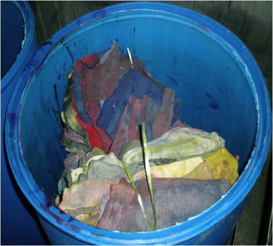 Contaminated rags, gloves, plastic, filters, paper, etc.